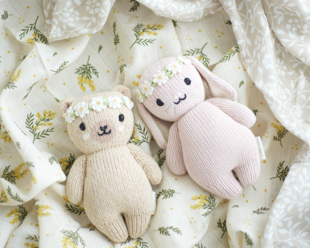シンプルでありながら細かく編み込まれた作品は、赤ちゃんが抱きしめやすい大きさ。